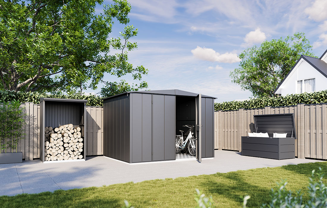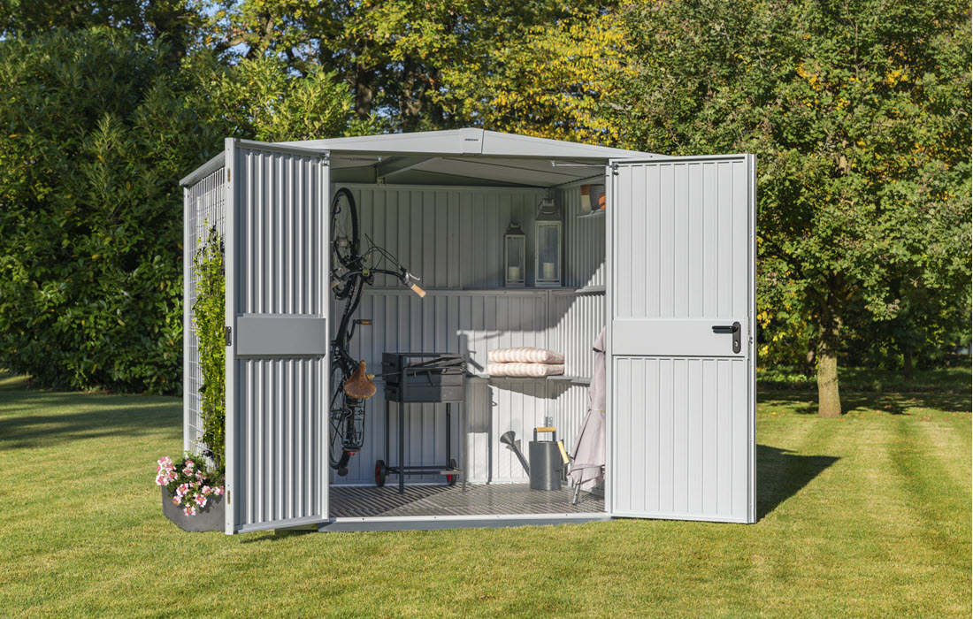 Mit den Stauraumsystemen von Hörmann Schweiz schafft man im Nu Ordnung rund ums Haus. Die geschmackvollen Gartenhäuser aus Metall sind individuell gestaltbar, besonders wartungsarm und witterungs- und schimmelresistent.