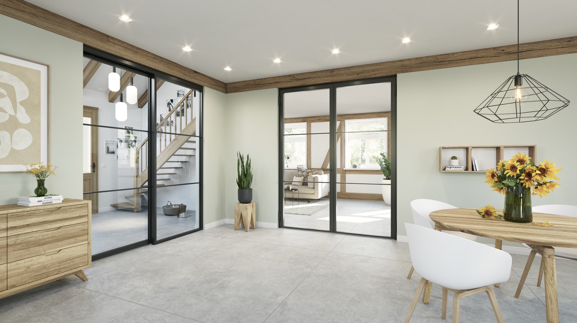 Stylische Glaselemente bringen nicht nur Helligkeit und Weite in ein Haus, sie verleihen auch jedem Raum einen ganz besonderen Charme. Durch ihre Lichtdurchlässigkeit und ihr transparentes Erscheinungsbild sorgen sie für helle, lichtdurchflutete Räume, was oft in Fluren, Küchen oder Wohnzimmern gewünscht ist.