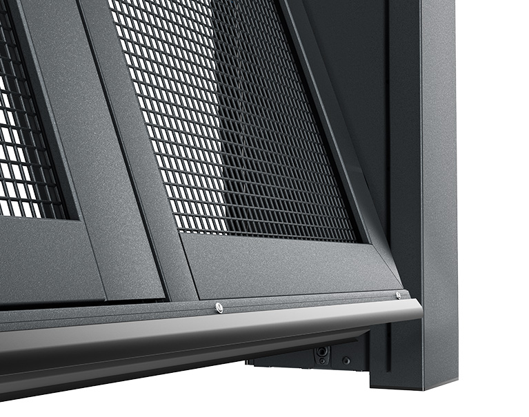 Das Torblatt der ET500 Serie 3 ist mit sehr vielen Füllungsvarianten und Farben erhältlich und kann beispielsweise mit einer der zahlreichen Lochblech- oder Gitterfüllungen der Anforderung nach einer natürlichen Garagenbelüftung gerecht werden. Aber auch individuelle Gestaltungsideen für gehobene architektonische Ansprüche lassen sich dank des einteiligen Torblatts und der flächenbündigen Konstruktion hervorragend umsetzen. So lässt sich das ET500 durch eine aussen aufgesetzte Beplankungen praktisch unsichtbar in eine Fassade integrieren.